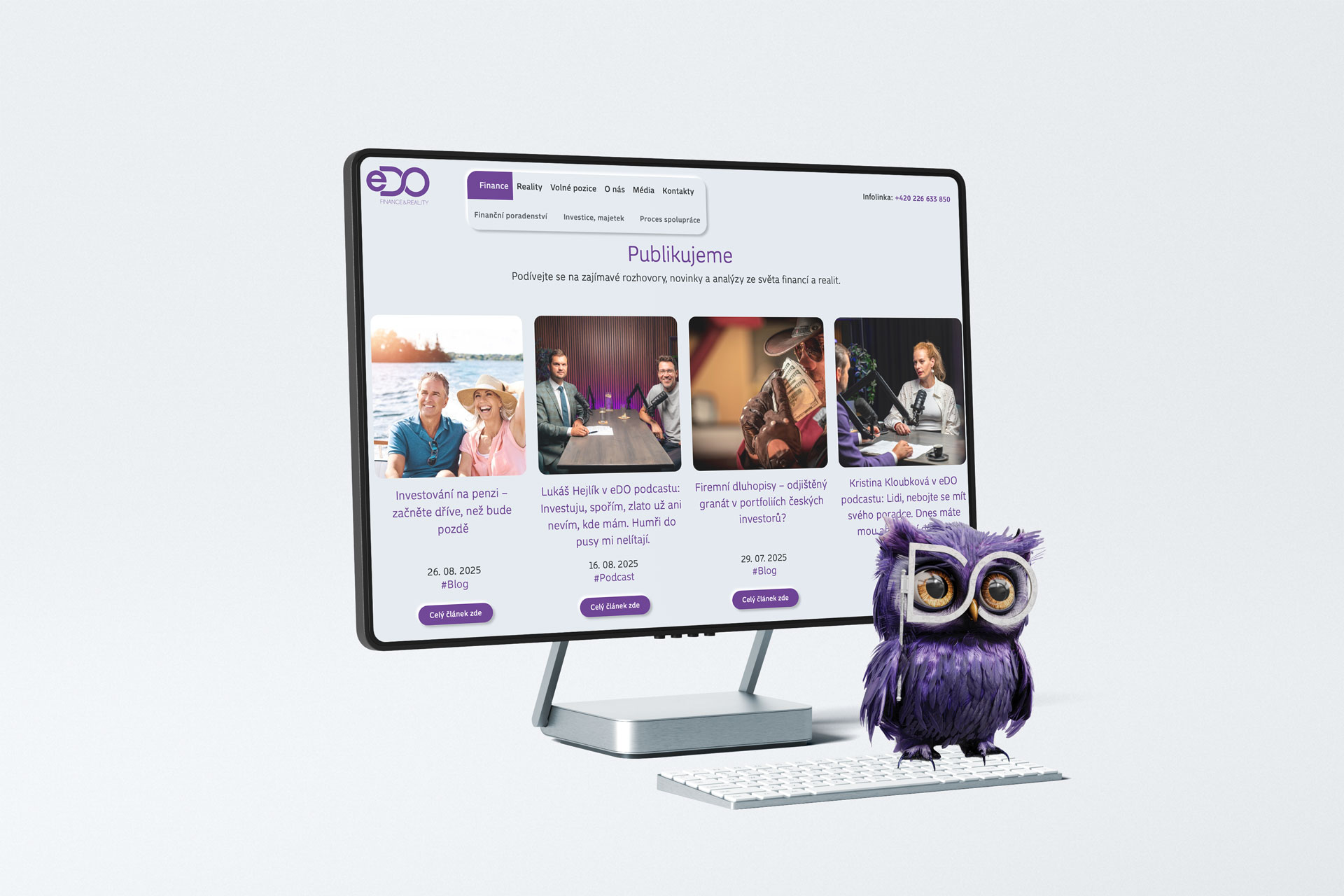 Pro finanční skupinu eDO jsme připravili moderní web, jenž je součástí širší kampaně a celkové modernizace vizuální identity. Naším cílem bylo rozšířit a zpřehlednit informace o službách v oblasti finančního a realitního poradenství a podpořit profesionální image značky. Výsledkem je přehledná a vizuálně atraktivní online prezentace, která pomáhá eDO efektivněji komunikovat se zákazníky a posiluje jejich důvěru.